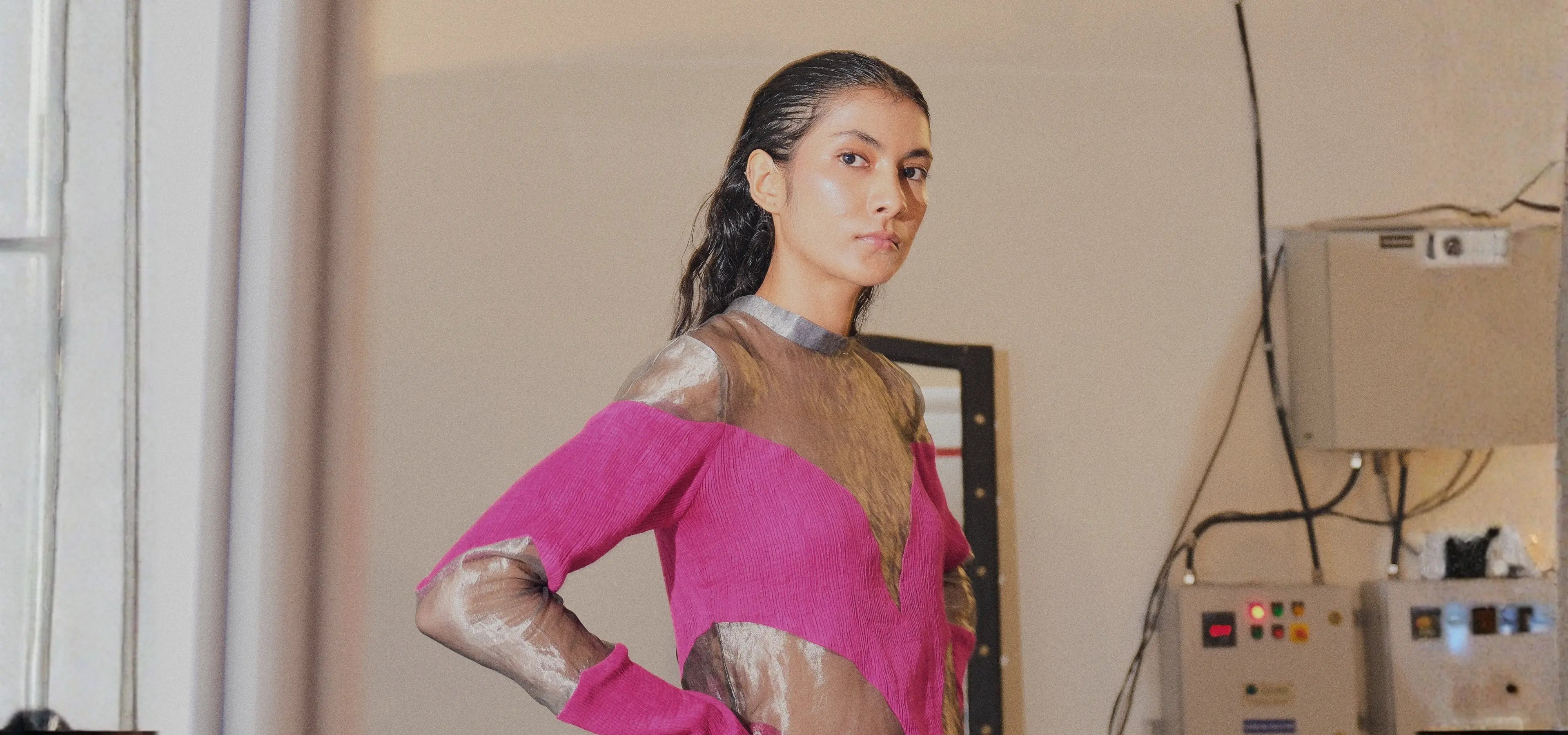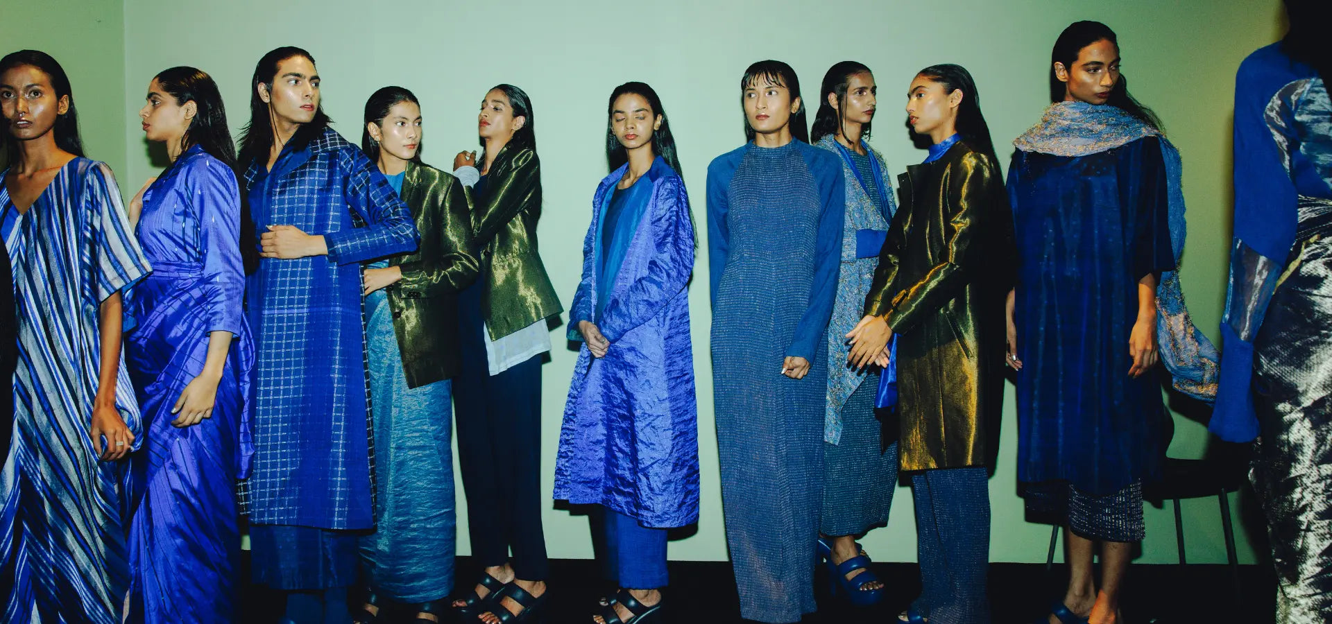 Handwoven Cotton Silk Shaded Panelled Kinji Dress