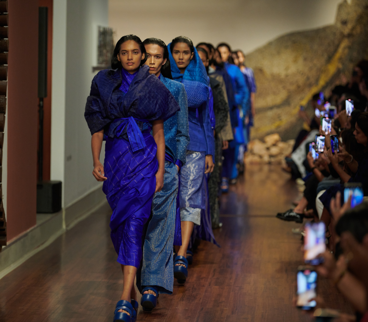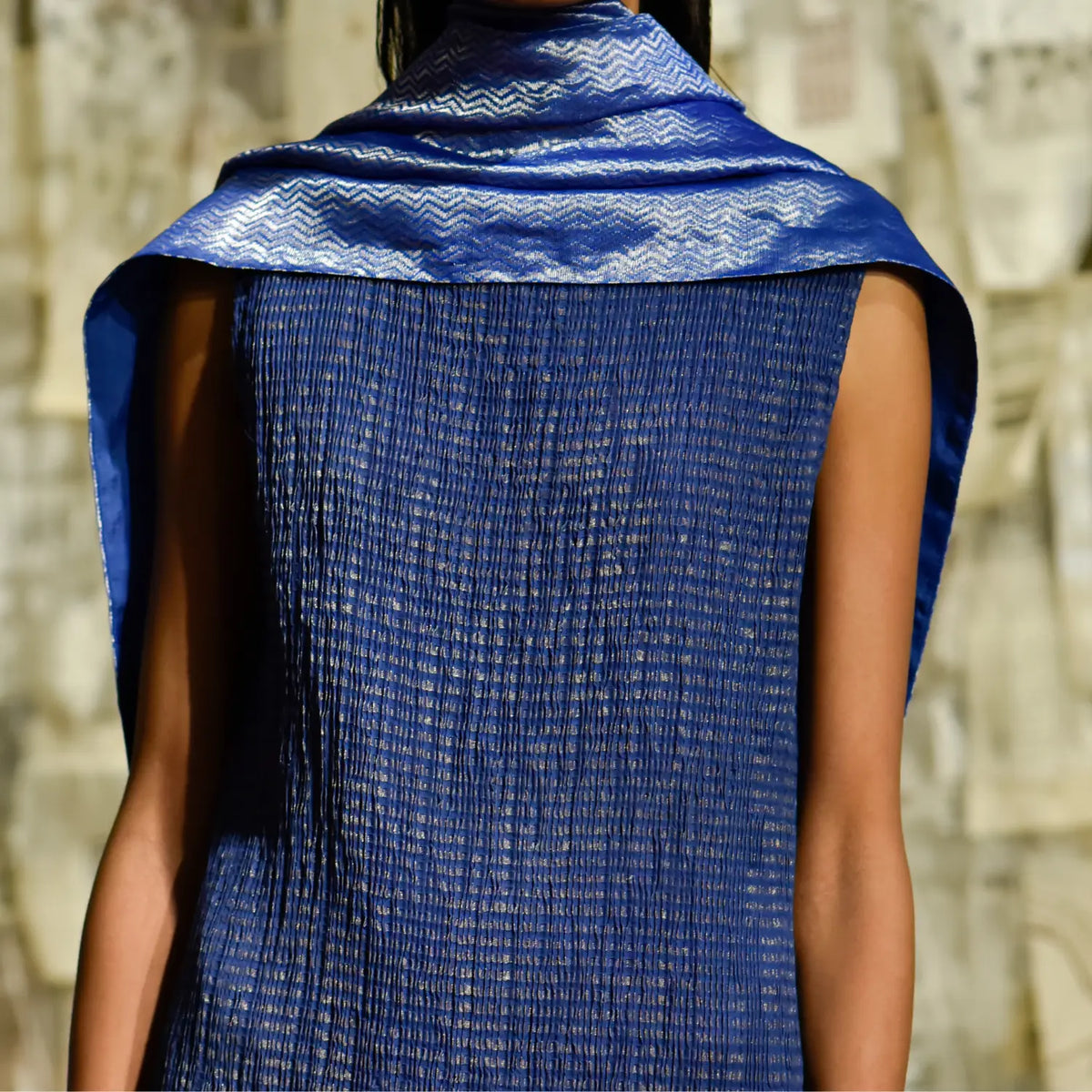 Handwoven Molten Metallic Ultramarine Silver Blue Tunic