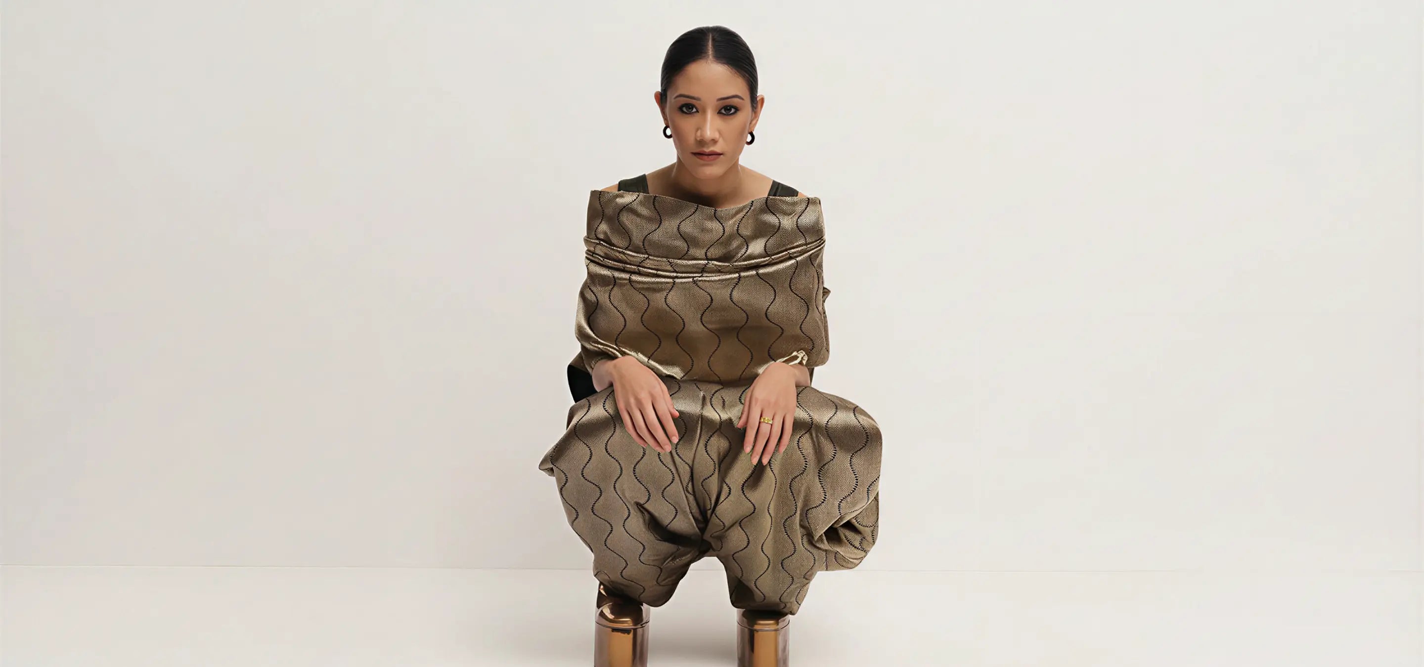 Handwoven Engineered Striped Silk Kinji Layered Dress