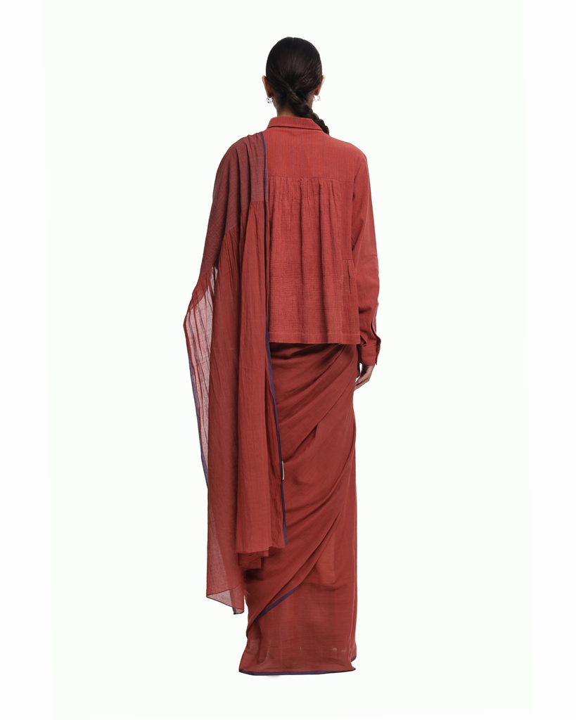 Handwoven in pure cotton , this saree makes for an easy and comfortable wear. The palla is designed to seamlessly blend in to the body providing stretch and stability. Its a first of its kind Sarees where innovation on the loom (in weave) enables functionality.