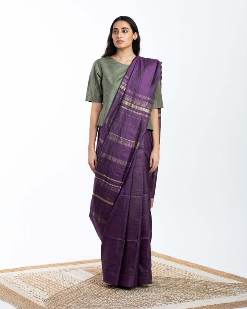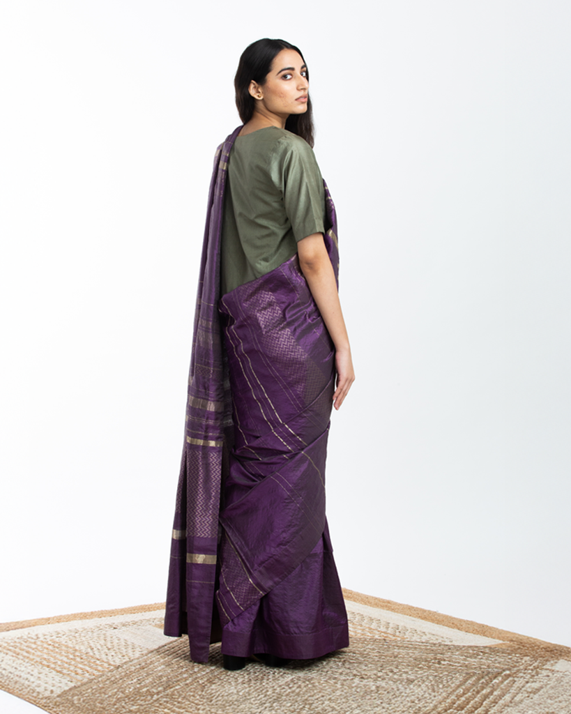Handwoven Purple Engineered Silk Saree