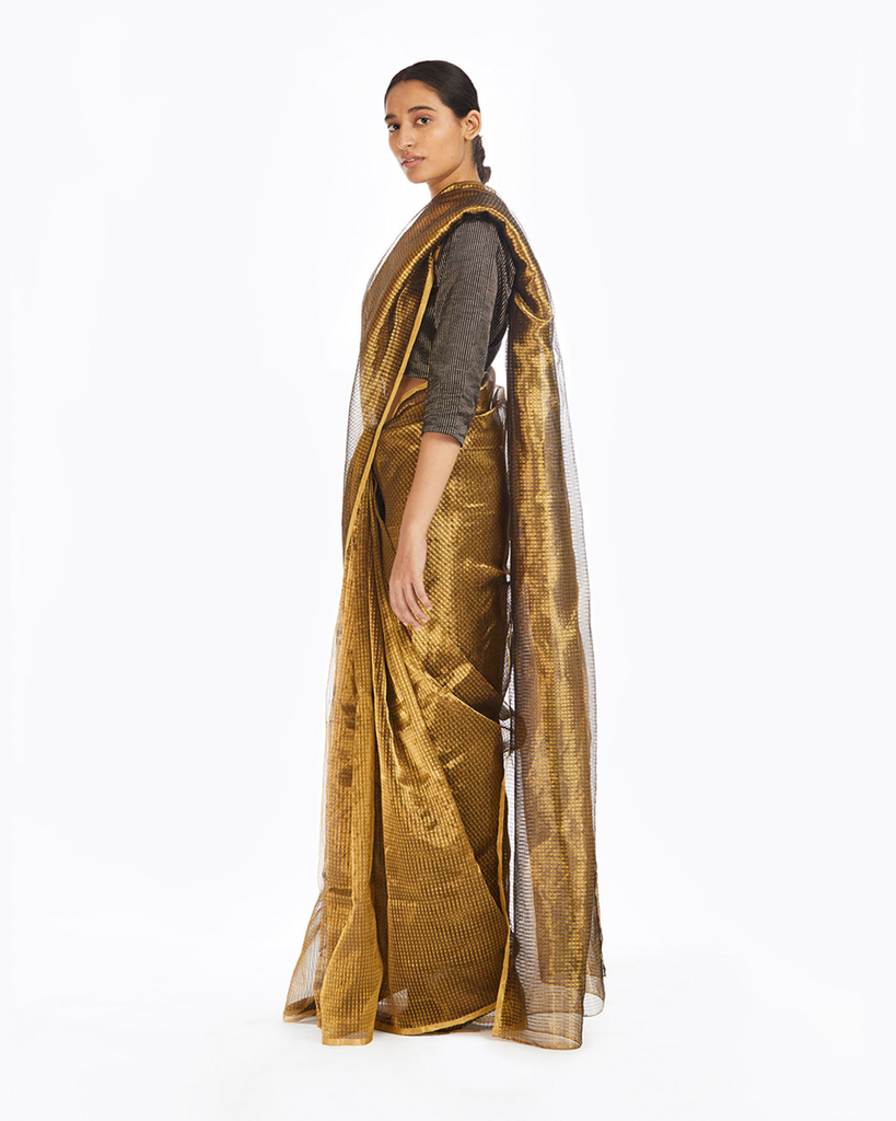 Handwoven Liquid Molten Gold Textured Metallic Saree