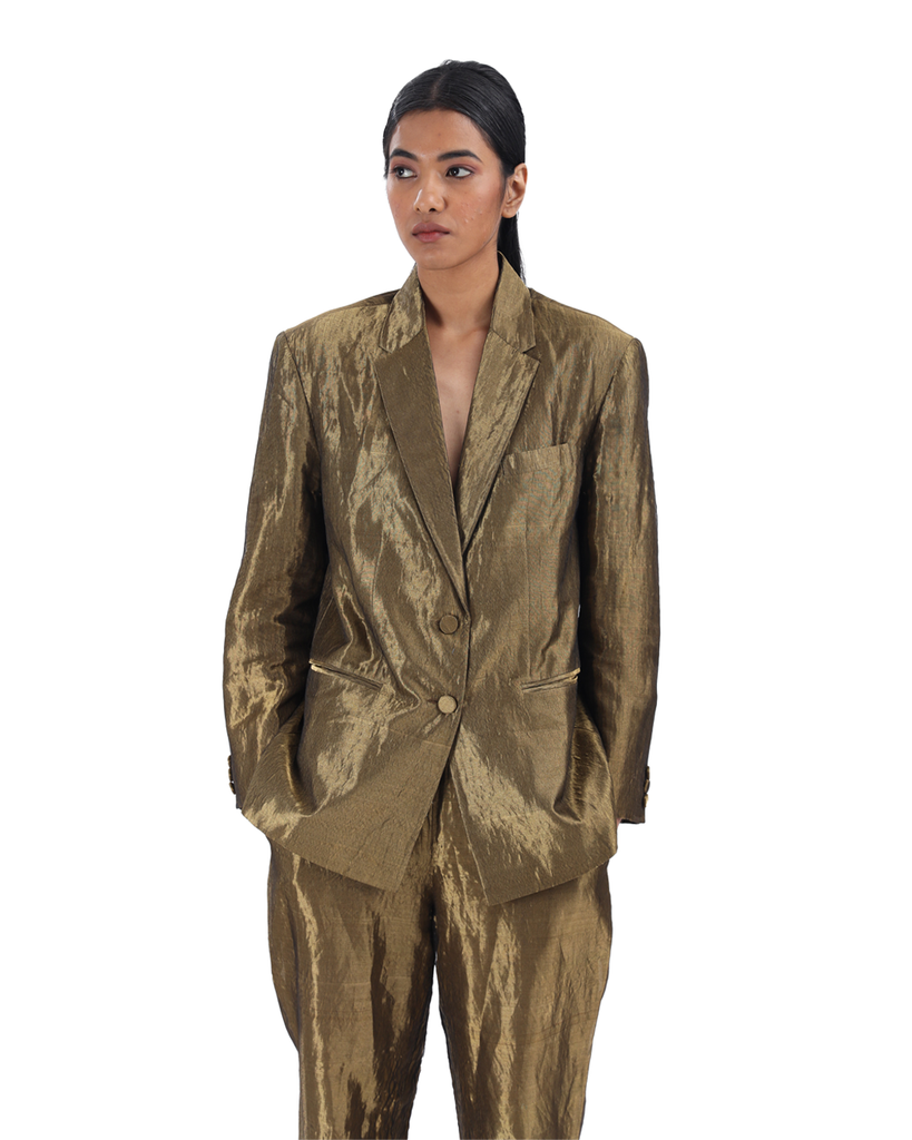 Handwoven Liquid molten metallic gold Blazer
